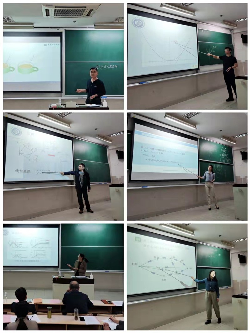各位参赛教师根据比赛规则在赛前按照要求提交了“教学设计”相关材料,并精心准备了“课堂教学”与“教学反思”两个现场竞赛环节。在15分钟的“课堂教学”环节,6位青年教师各施才能,各展所学,以生动流畅的语言、自然大方的教态、制作精美的多媒体课件、丰富有效的现代化教学手段赢得评委和观摩教师的一致好评。有的老师还加入了视频、教具、时事新闻、经典案例等以增强授课效果,力求将抽象、深奥的大学数学课堂变得生动有趣,充分激发学生学习兴趣。15分钟课堂教学结束后,各位选手结合学情分析和本节段实际授课效果,从教学理念、教学方法和教学过程三方面着手,梳理了本节课的教学设计思路。各位教师精彩的授课给在场的每一位师生留下了深刻的印象。随后,朱坤平代表6位专家评委对参赛者的现场授课情况进行了专业点评,他表示,各位青年教师的授课理论联系实际、层次分明、重点突出、感染力强,感谢参赛老师们带来的精彩授课。