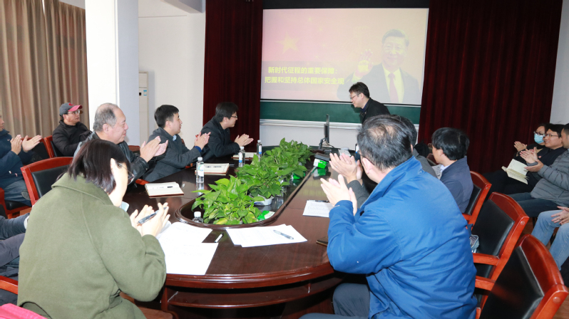在八教505开展教职工理论学习,邀请马克思主义学院朱忆天教授作题为“新时代新征程的重要保障:把握和坚持总体国家安全观”专题报告。报告会由学院党委副书记高乐主持,学院全体教职工参加本次学习。