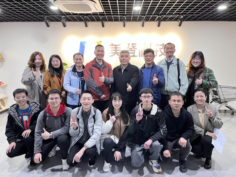 副院长(主持工作)林辉球、党委副书记王帅、副教授施劲松、毕业年级辅导员李莹及毕业生代表,一同前往杭州美登科技股份有限公司走访校友、访企拓岗。公司董事长、创始人、2008届校友邹宇携公司总经理叶文、美折事业部负责人陈贤栋、人事行政部负责人姚甜等人进行了全程接待。