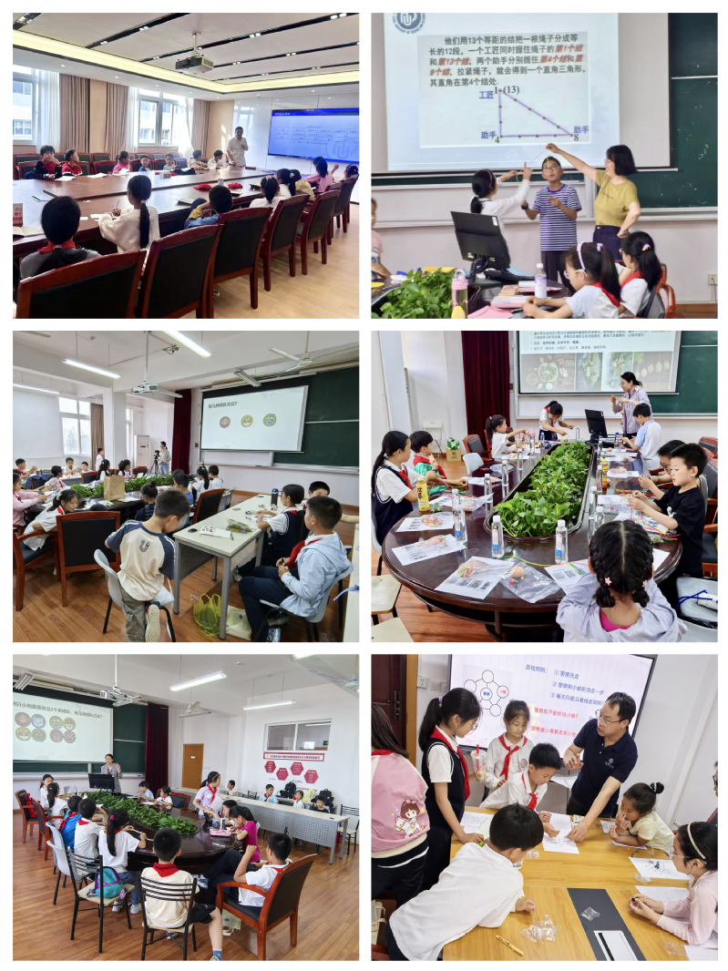 “快乐小数苗”项目通过符合小学生接受能力的活动形式和内容,为教职工子女创造条件,从小培养数学思维,锻炼逻辑思考能力,提高对数学美学的接受能力。本学期开设了“哪吒怎么数数”、“图上的组合策略”、“概率知多少”、“绳结制作:蛋兜” 、“DIY直角:我是小小几何师”等课程,学生们通过趣味性十足的手工制作或者游戏初步了解一些数学概念背后的逻辑,小朋友们聚精会神、积极参与、兴趣盎然。